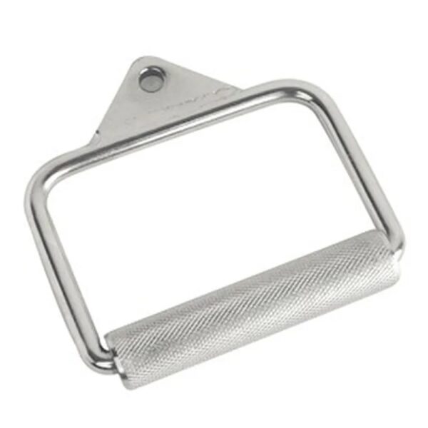 Made from sturdy steel with a chrome-plated surface and textured grip zone, the handle offers reliable stability and a secure hold. With a handle diameter of 2.5 cm and a length of 14.5 cm, it sits comfortably in the hand. The solid design allows it to be used for high-intensity training and ensures even movement control during isolated or symmetrical exercises. Ideal for supplementing functional cable pulley stations.