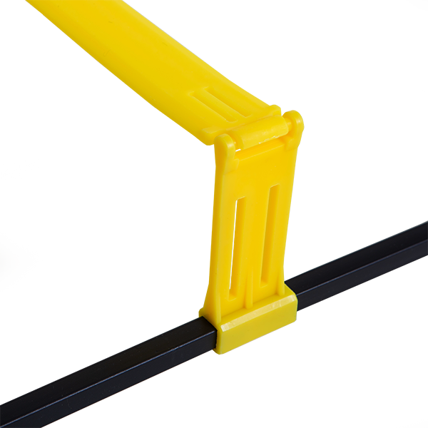 Les huit échelons, espacés de 40 cm, sont fabriqués en plastique ABS durable et résistant aux intempéries. L'astucieux mécanisme de pliage réduit les risques de trébuchement et permet un entraînement sûr et intensif tout en offrant une grande flexibilité. En mode plat, l'échelle mesure 300 × 66 × 2 cm, en mode haie 300 × 50 × 10,5 cm.