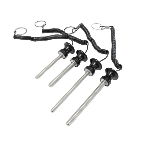 Le boulon enfichable magnétique en acier trempé offre un maintien sûr grâce à sa poignée en plastique avec aimant intégré et empêche le boulon enfichable de glisser. Équipé d'un câble en spirale et d'un anneau de fixation, il est idéal pour les chargeurs de poids. Disponible en différentes tailles.