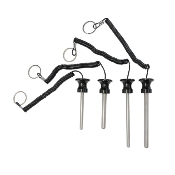 Le boulon à emboîter magnétique en acier trempé assure un maintien sûr et une stabilité pour les chargeurs de poids. Le bouton de la poignée en plastique est équipé d'un aimant intégré qui empêche le boulon enfichable de tomber accidentellement. Le câble en spirale et l'anneau de fixation offrent une sécurité et un confort supplémentaires lors de la manipulation.