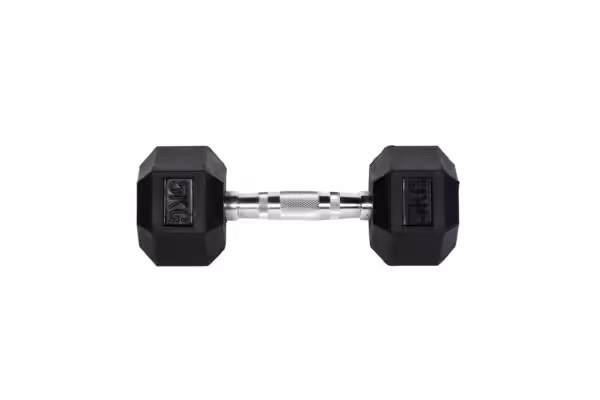 Hex Dumbbells: Robuste Kurzhanteln mit Gummibeschichtung und sechseckiger Form – ideal für Functional Training und CrossFit. Langlebig, bodenschonend und mit verchromtem Griff für sicheren Halt. Erhältlich von 1 bis 60 kg.