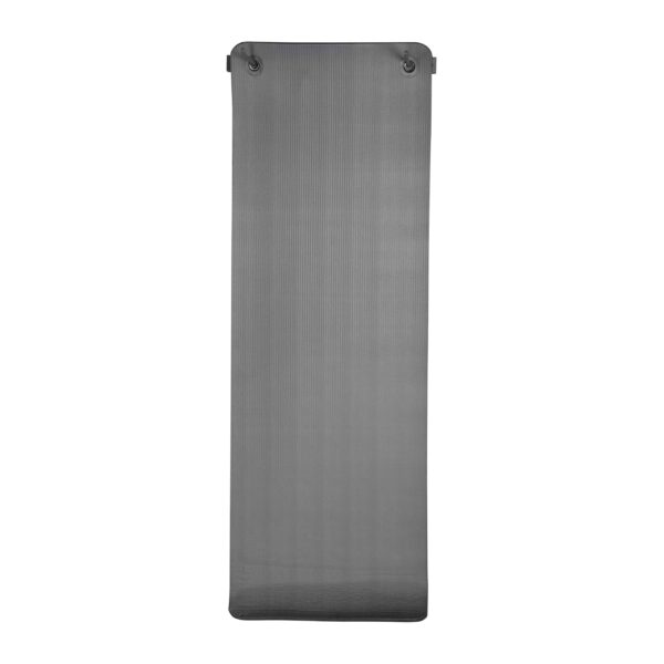 Stabiler Mattenhalter zur Wandmontage aus pulverbeschichtetem Stahl. Verstellbare Aufhängung für Gymnastikmatten mit Ösen. Bietet Platz für 10–20 Matten, abhängig von der Dicke. Masse: 65 × 5 cm.